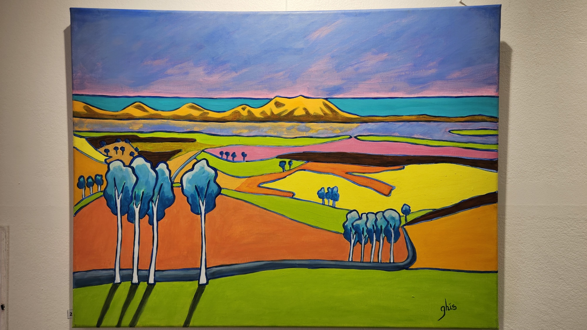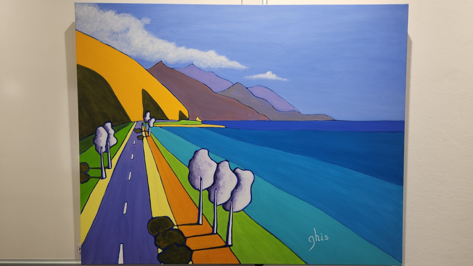 Ses toiles sont réalisées à l’acrylique et ses portraits sont réalisés au feutre et aquarelle.