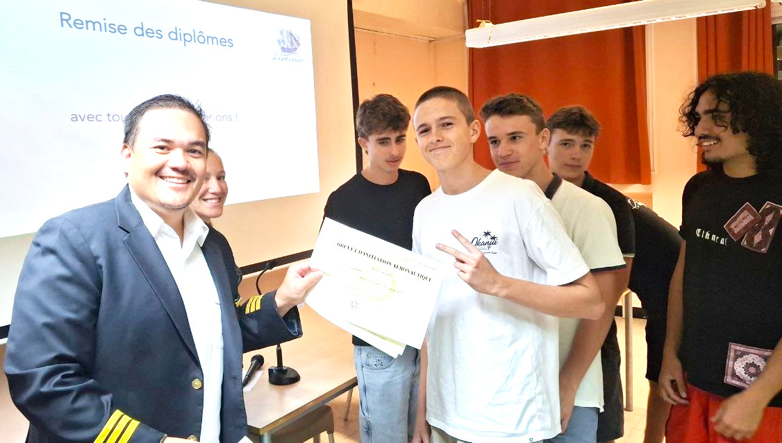 La cérémonie a également été honorée par la présence d’un pilote, M. Boulard, ancien élève du lycée Lapérouse et actuellement pilote pour la compagnie Fiji Airways, dont l’intervention a su inspirer les élèves.